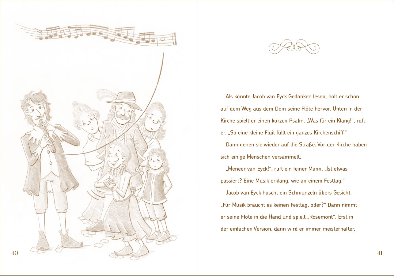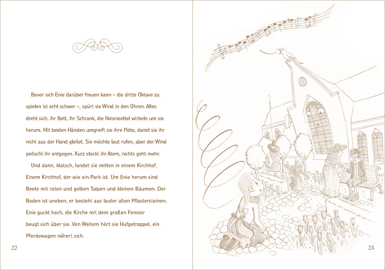 Enie liebt nichts mehr als Blockflöte zu spielen, auch wenn sie dafür oft belächelt wird. als ihr eines Tages das erste mal das ganz hohe D gelingt, landet sie pötzlich im 17. Jahrhundert, wo sie Jacob van Eyck trifft. Sie kommen ins Gespräch und sie nimmt den berühmten Komponisten mit zurück in die Gegenwart.
